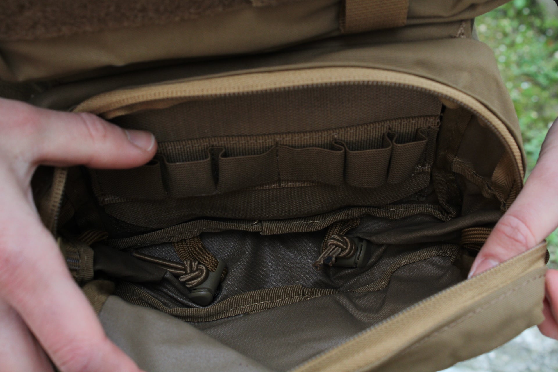 - scomparto superiore con organizer interno e cavi regolabili per il montaggio, ad esempio, di nascondigli